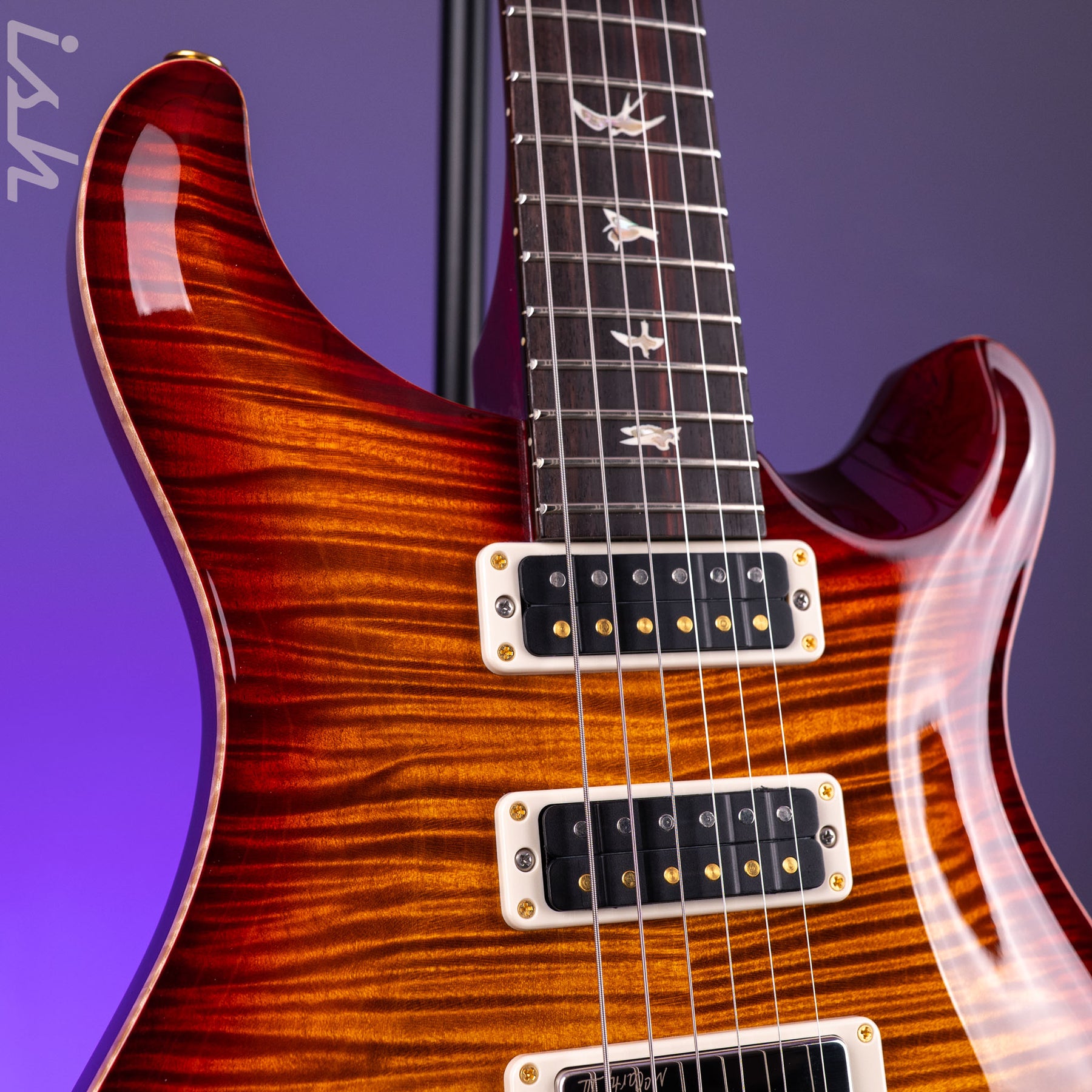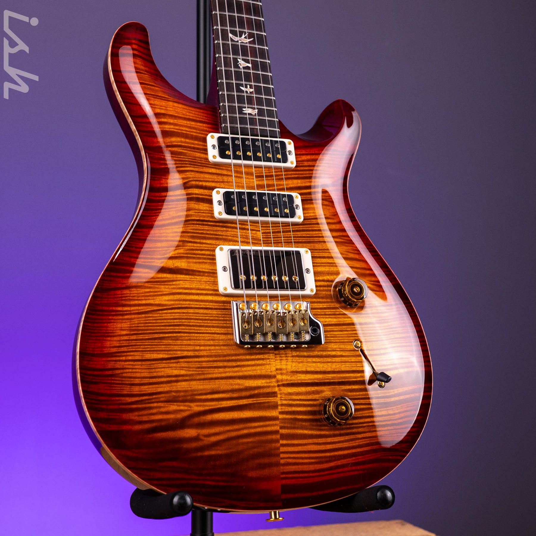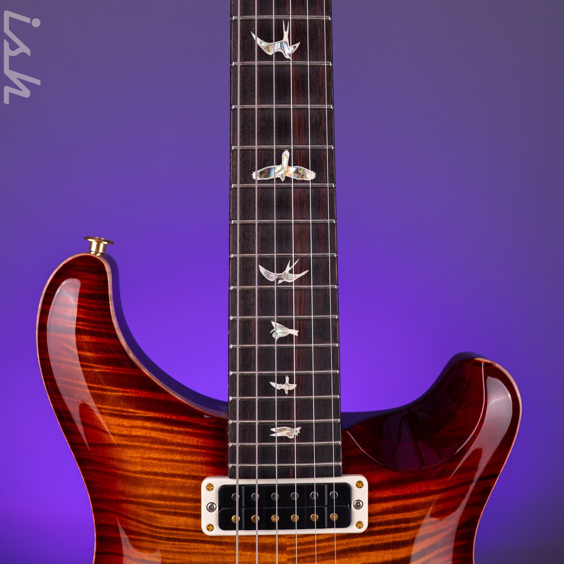 Other specifications include a maple top, mahogany back and neck, and a rosewood, 22-fret, 25” scale length fretboard with PRS trademark bird inlays. The PRS Studio is anchored by PRS’s patented Gen III trem and Phase IIl Locking Tuners with Wing Buttons, both designed for excellent tuning stability while maximizing the transfer of the strings’ vibration through the instrument.