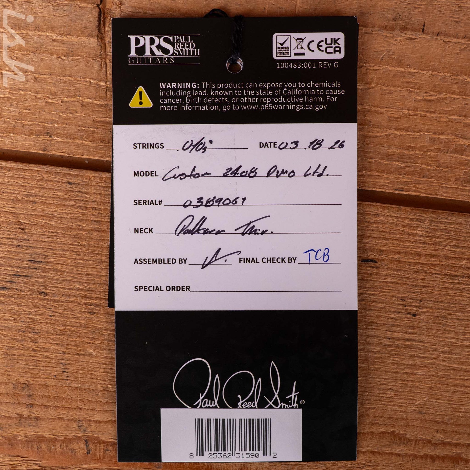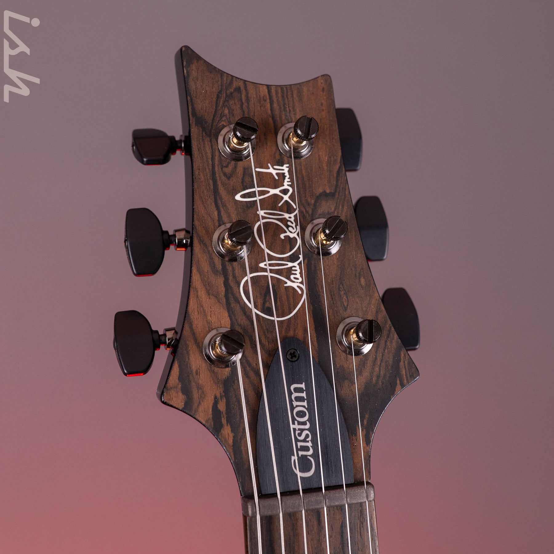 This Wood Library Custom 24-08 features a few unique appointments that set it apart from the standard model. Specs include: Ziricote fretboard and veneer, DMO pickups, Smoked Black hardware, and a Custom Color.