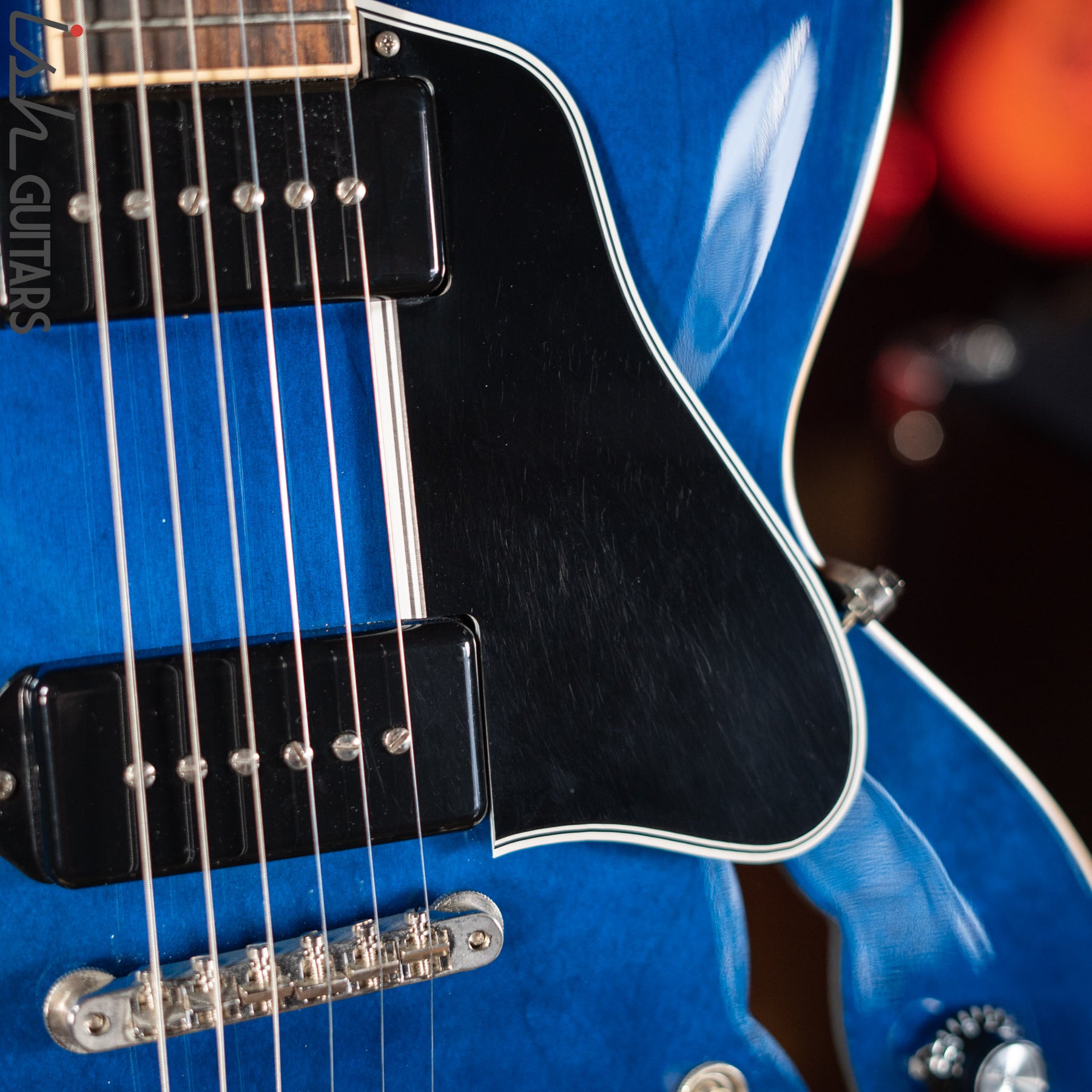 Cosmetic Condition: Guitar is in very good condition. There are some scratches under the bridge area of the guitar, one mark on the side, as well as a smudge in the finish on the neck near the nut. Guitar has some basic pick scratching on the pick guard to be expected as well as some wear on the hardware.