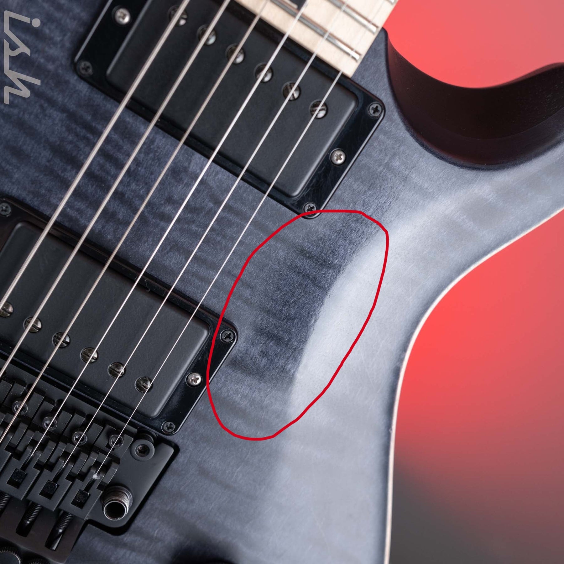 Cosmetic Condition: Very good condition with some slight glossing below the pickups in the satin finish as well as some scratching on the pickup covers. There are also some minor indentations from the floyd rose pressing against the inside of the cavity. Small belt rash scratch/ding on back of guitar. Ding on back of the neck as well.