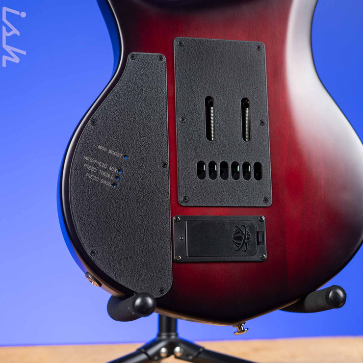 Electronics Layout: Custom Music Man® active preamp; push/push volume for gain boost, 500kohm push/push passive tone for custom 2 pickup configurations - .022µF tone capacitor