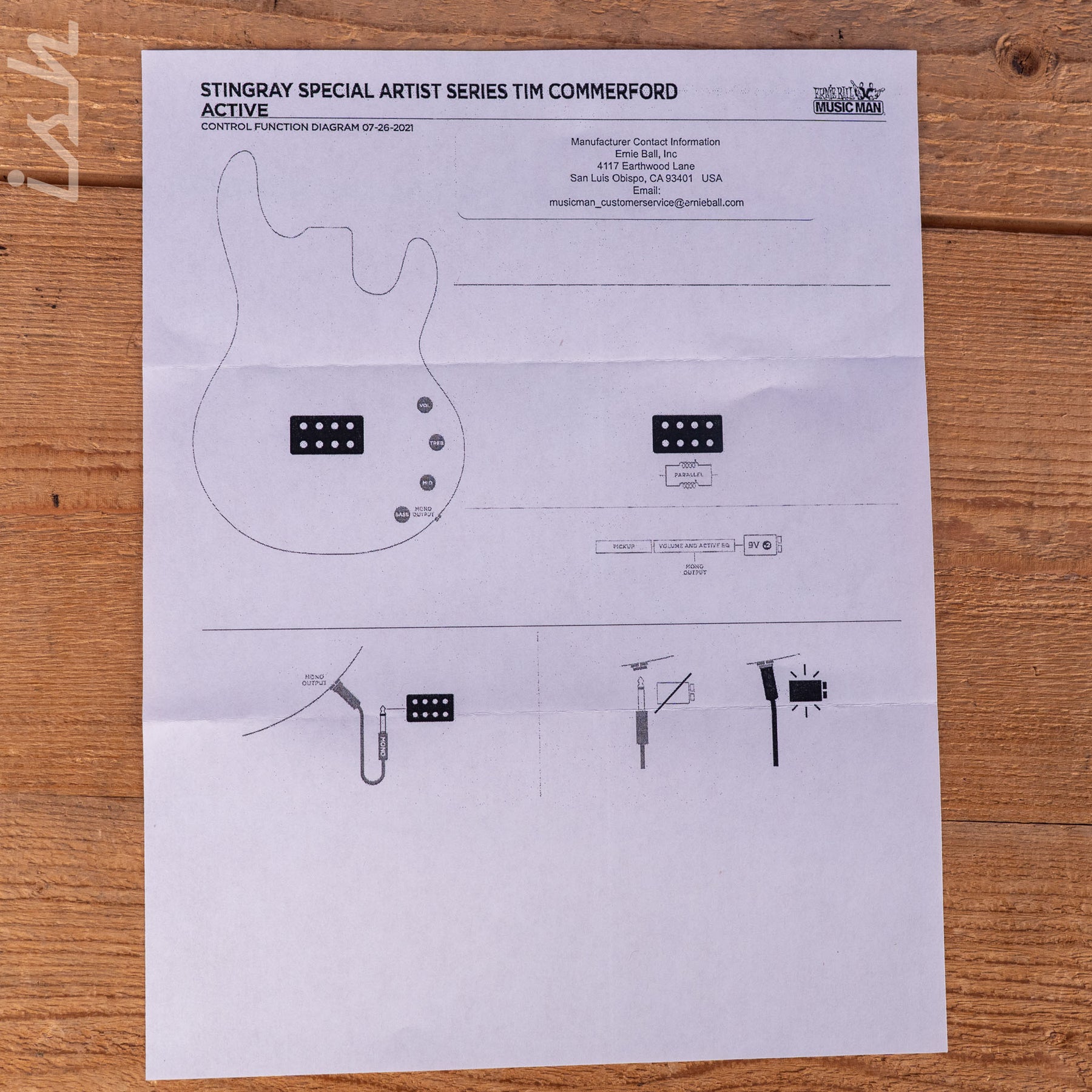 Controls: Volume, Treble, Mid, Bass (3-band active preamp with 18 volts of headroom)