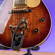 A sophisticated rendition of the original masterpiece, the G6134TQM-59 Limited Quilt Classic Penguin™ combines opulent aesthetics with period-accurate features and appointments from the golden age of electric guitars. Satisfying eyes and ears with its golden tones and gleaming looks, this rare bird comes alive in the player's hands, singing with its distinctive voice at every strum.