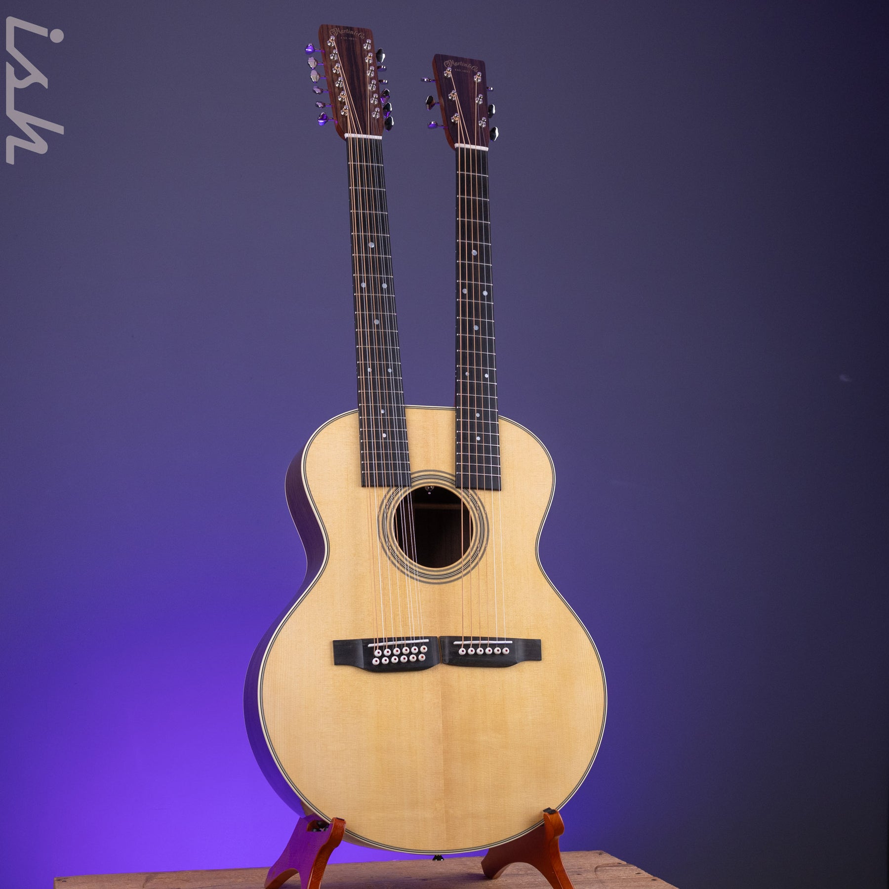For the first time in over a century, Martin is thrilled to offer a one-of-a-kind double-neck instrument – the Grand J-28E DN. As a member of the popular Standard Series lineup, this all-new guitar combines Martin’s renowned quality and craftsmanship with modern innovation, featuring an acoustic-electric with a twelve and six-string neck, giving you the versatility to explore new sounds, tunings, and musical textures all on one guitar. Its powerful gloss Grand Jumbo body delivers a bold, resonant tone, with solid East Indian rosewood back and sides and a solid spruce top that ensures balance and clarity across all playing styles. This double-neck guitar took years to perfect, and thanks to cutting-edge technology at our Nazareth factory, the Grand J-28E DN, featuring two compound dovetail neck joints and unique X bracing, is now available to the public. Both necks feature a smooth satin finish and ebony fingerboard, with the six-string neck offering a slightly slimmer profile at the nut. It also includes built-in custom Fishman® electronics, making it ready for the stage and studio. With classic 28-style appointments and endless sonic possibilities, this guitar is a dream for players seeking an extraordinary instrument that’s anything but standard.