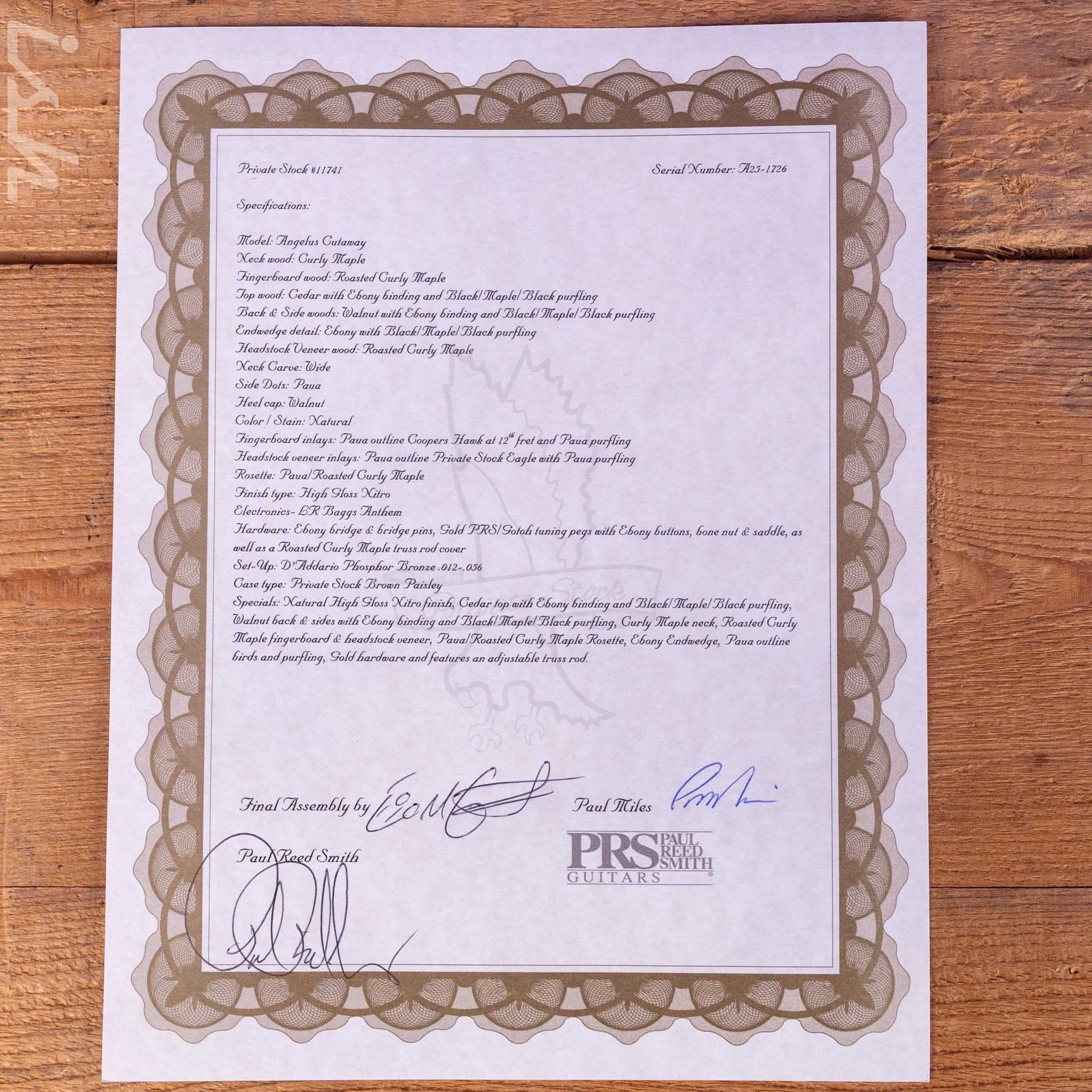 PRS Private Stock Acoustic Angelus Cutaway Cedar Top Walnut Back/Side