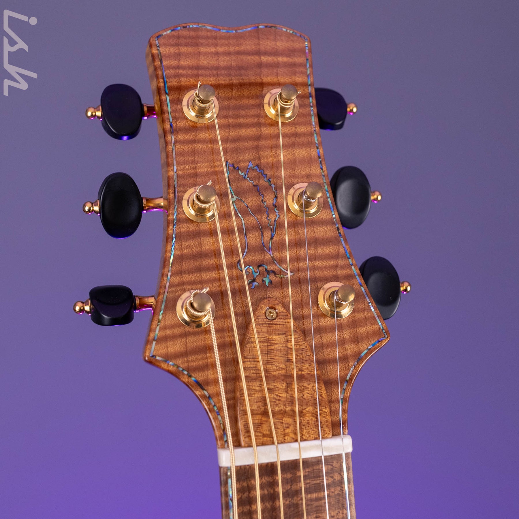Headstock veneer inlays: Paua outline Private Stock Eagle with Paua purfling
