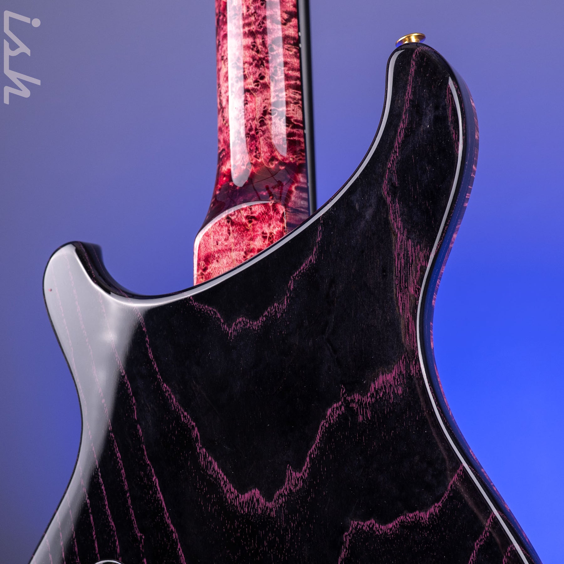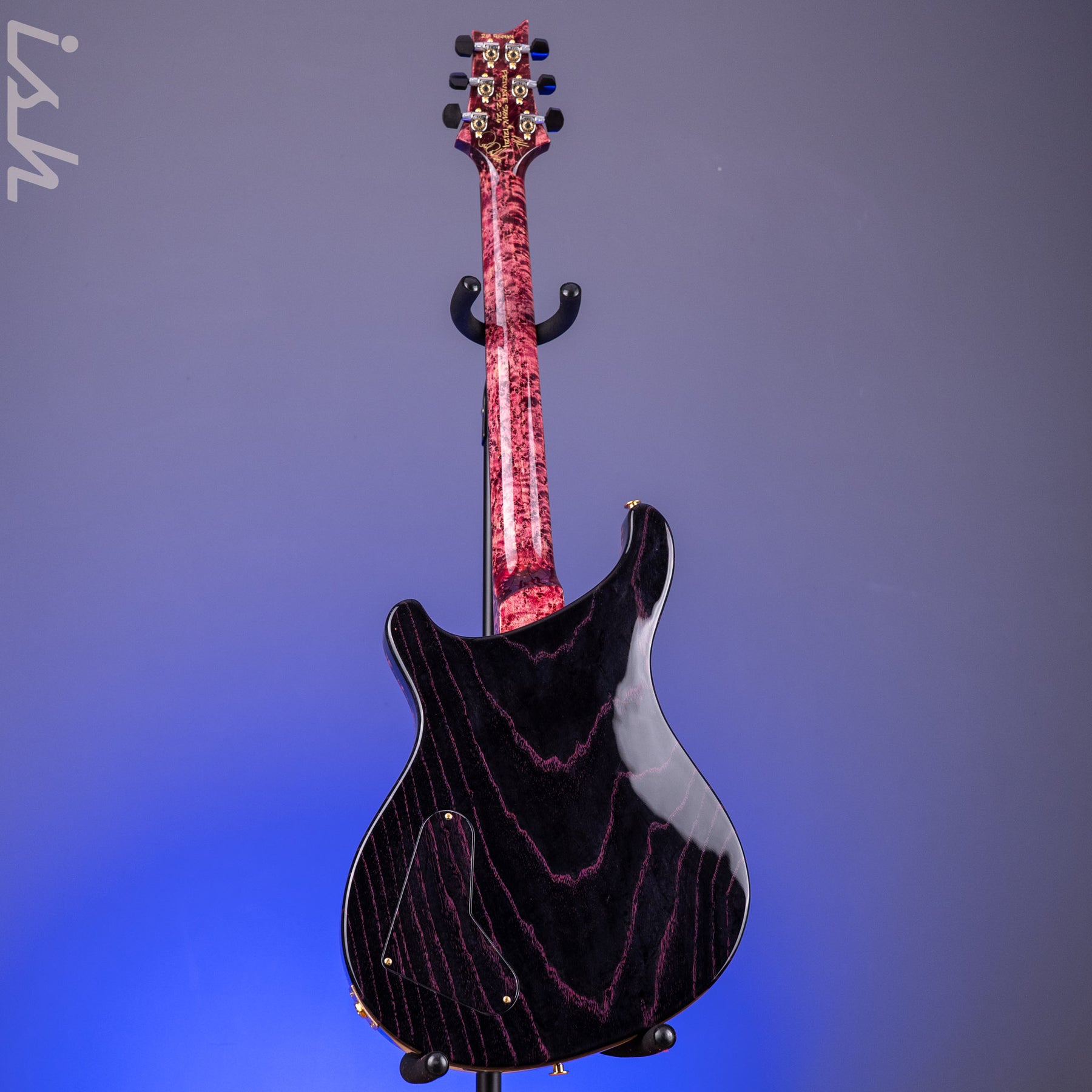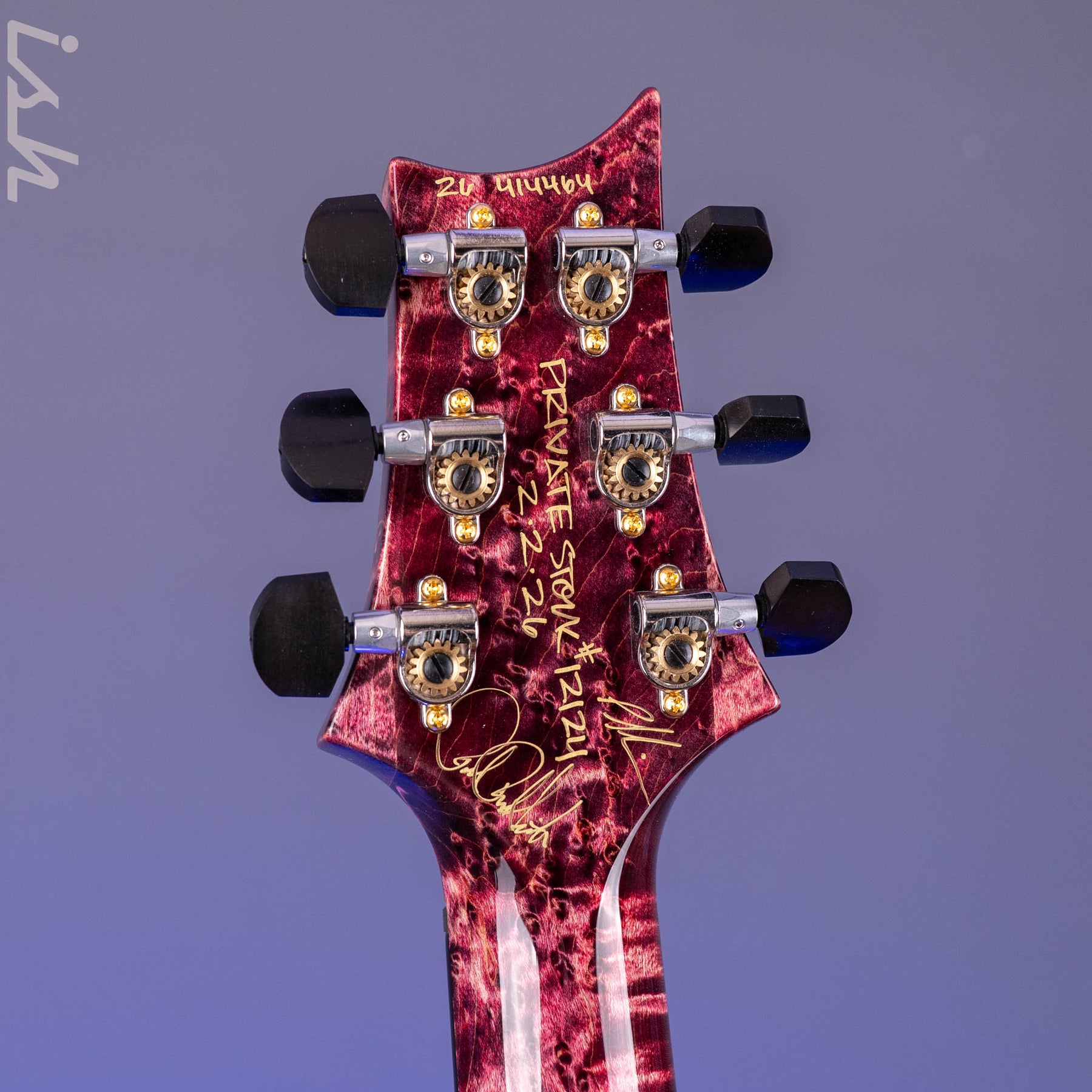 Hardware: Gold /Nickel PRS Plate-style bridge, PRS Phase IlI set screw locking tuning pegs with Ebony buttons, and a Maple Burl russ rod cover stained to match