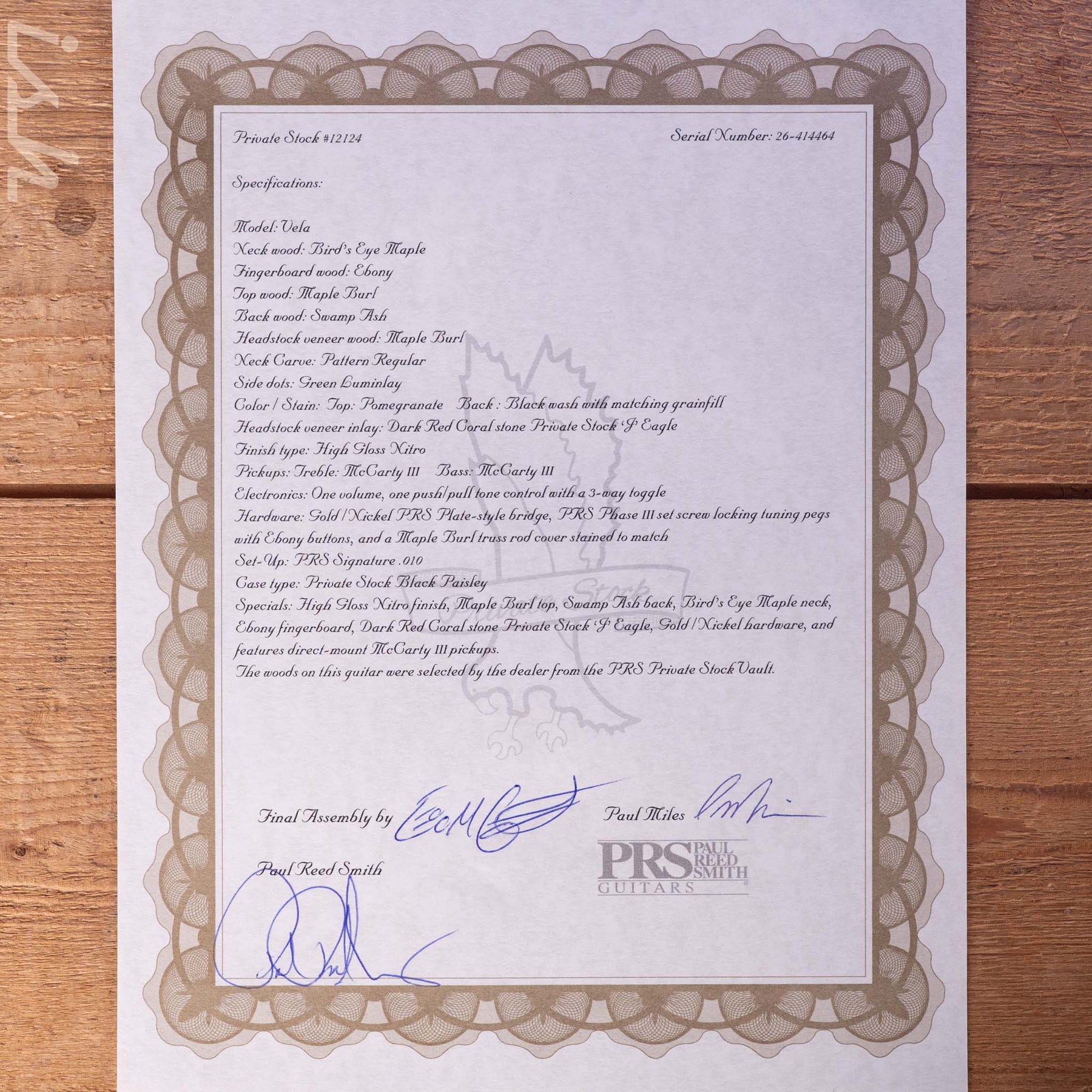 PRS Private Stock Vela Maple Burl Pomegranate