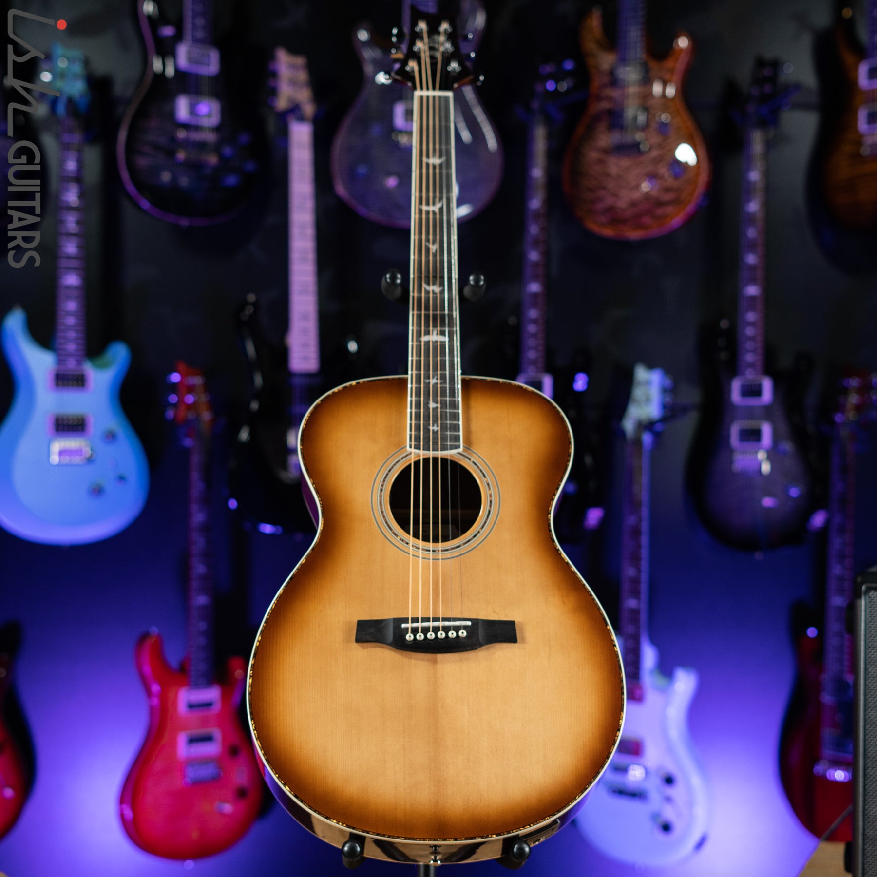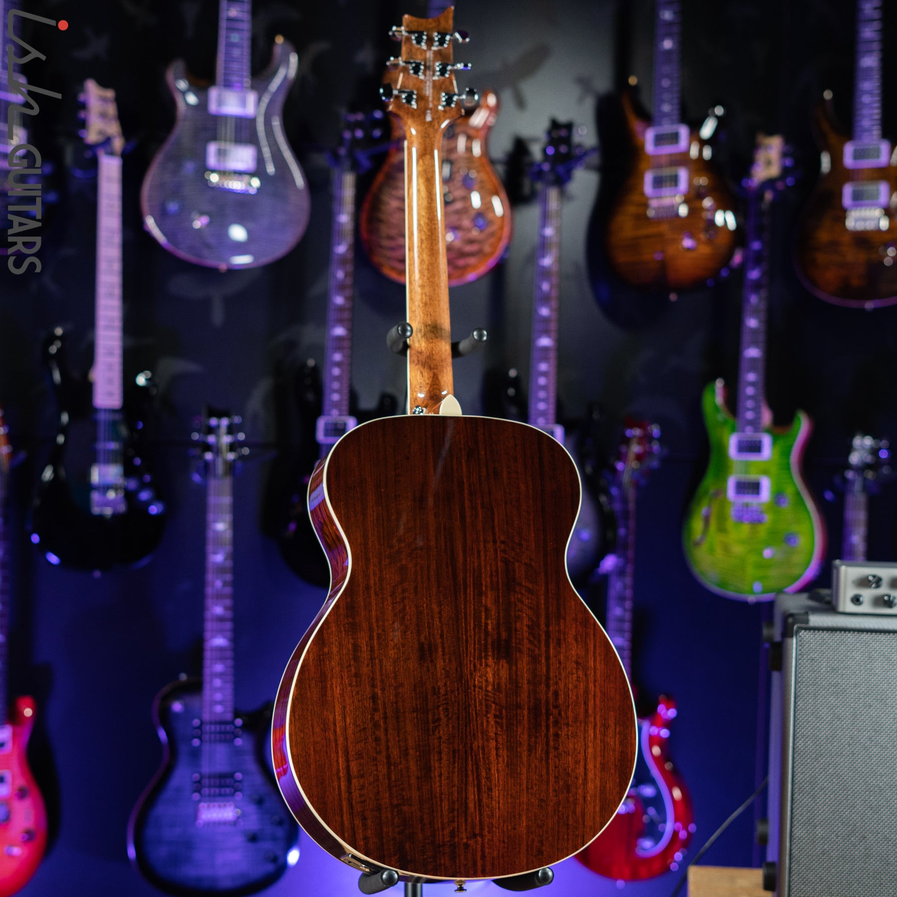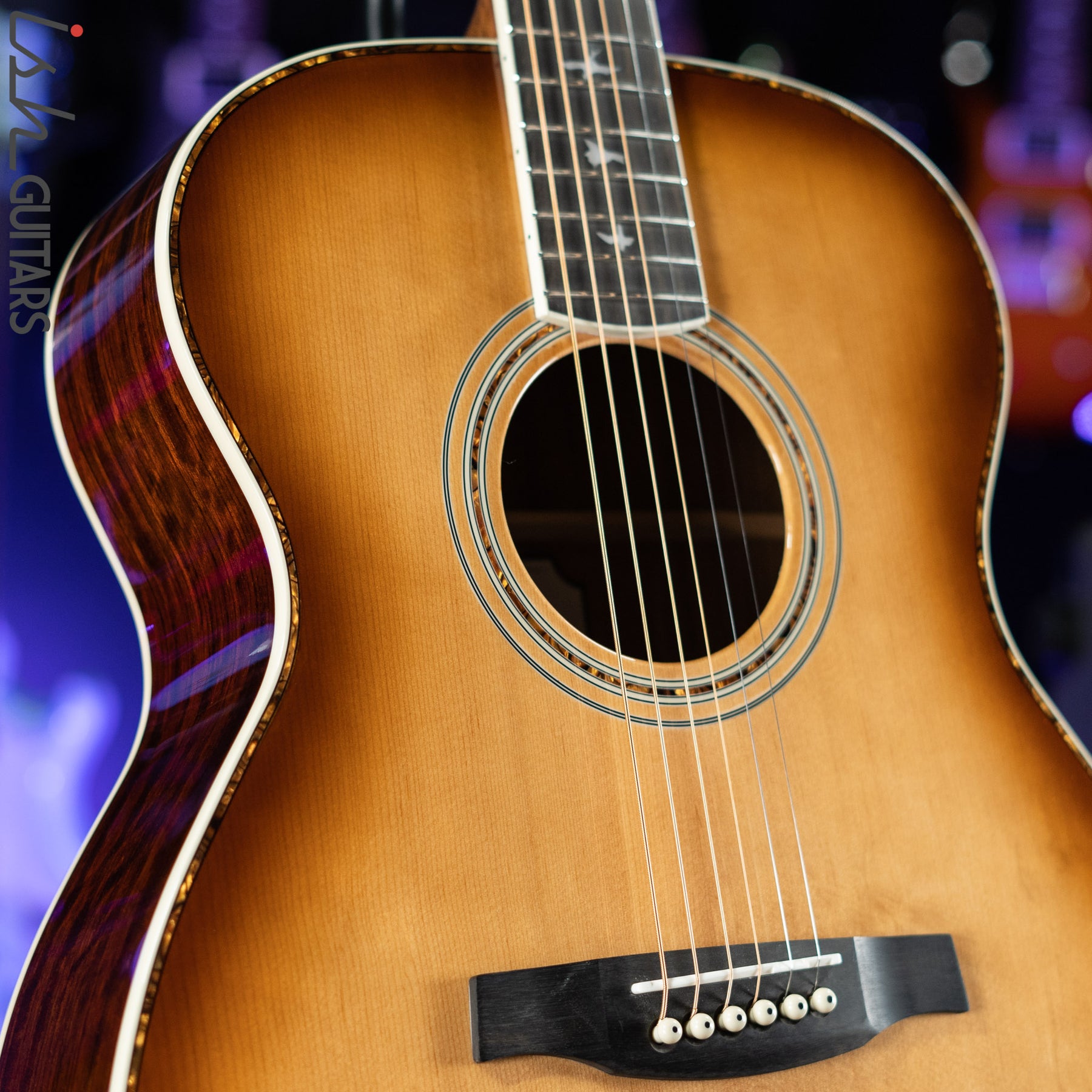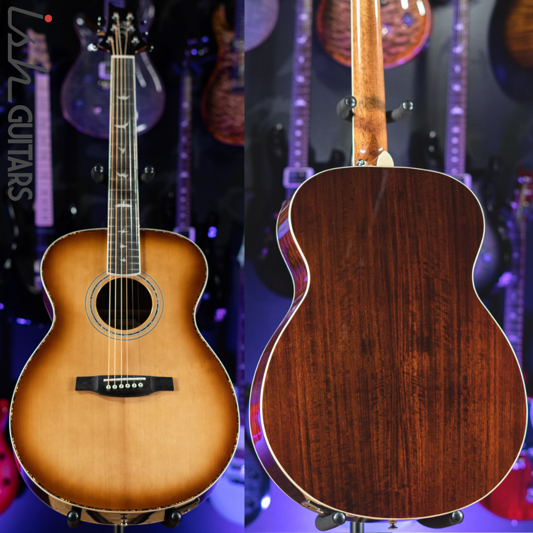 Additional high-quality features include a solid spruce top, ebony fretboard and bridge, bone nut and saddle, as well as PRS trademark bird inlays and headstock design. Ships with a high-quality hardshell case.