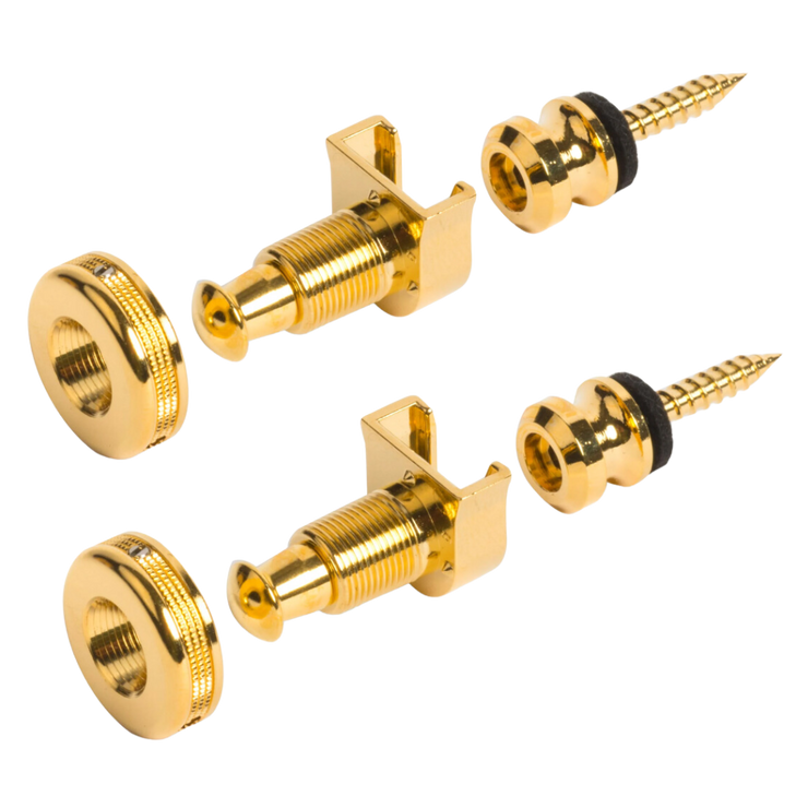 The plungers on the locks are all one piece, and the locks have a longer threaded section to accommodate thicker straps. The strap buttons are one piece (button and screw) with a slightly enlarged thread to dig into oversized strap button screw holes, and use a 3mm allen wrench for installation. The collars have been re-designed to include a set screw, which helps secure the strap onto the lock.